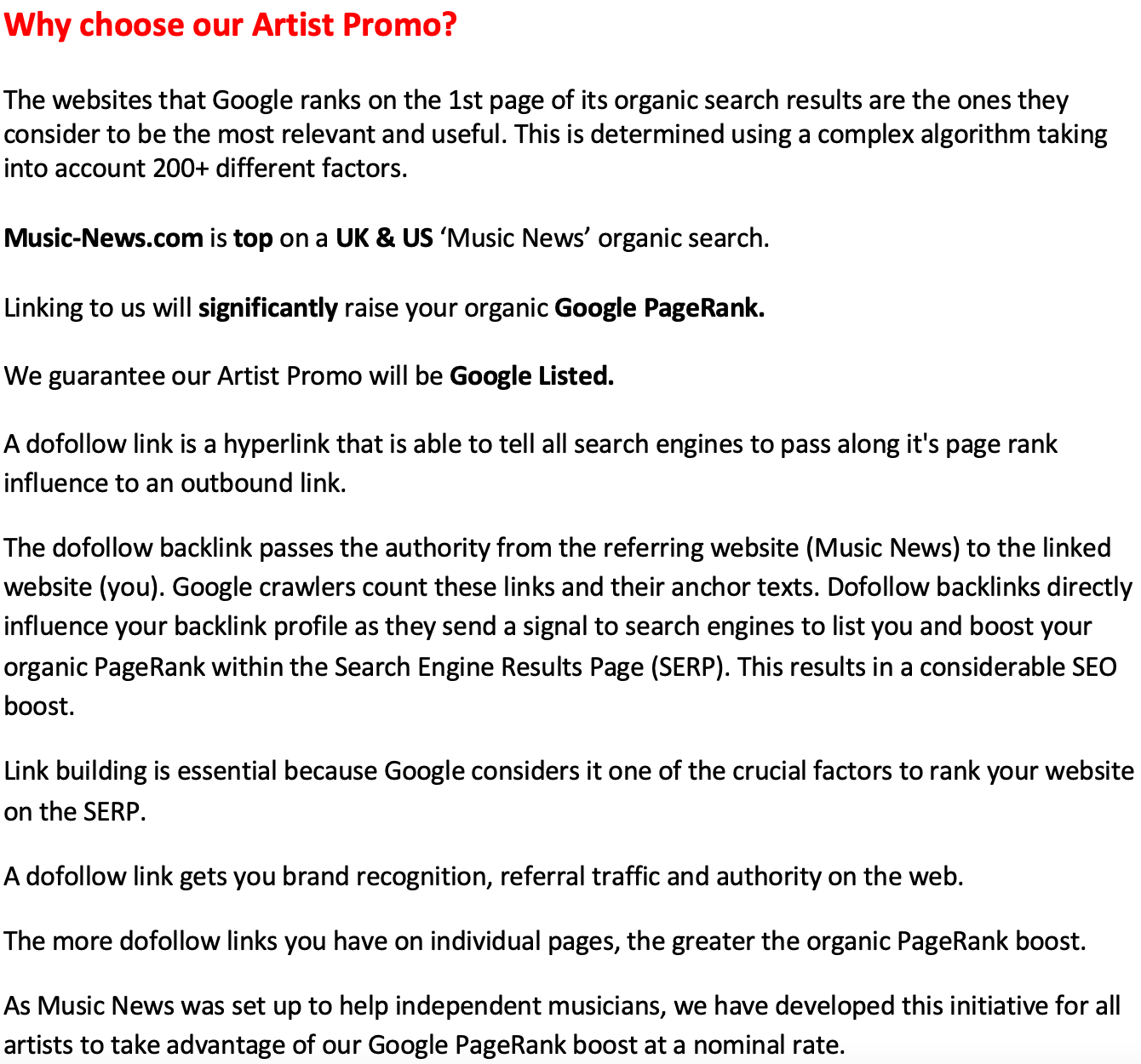 The Artist Promo has been created to promote artists to our established readership and enhance organic SEO.